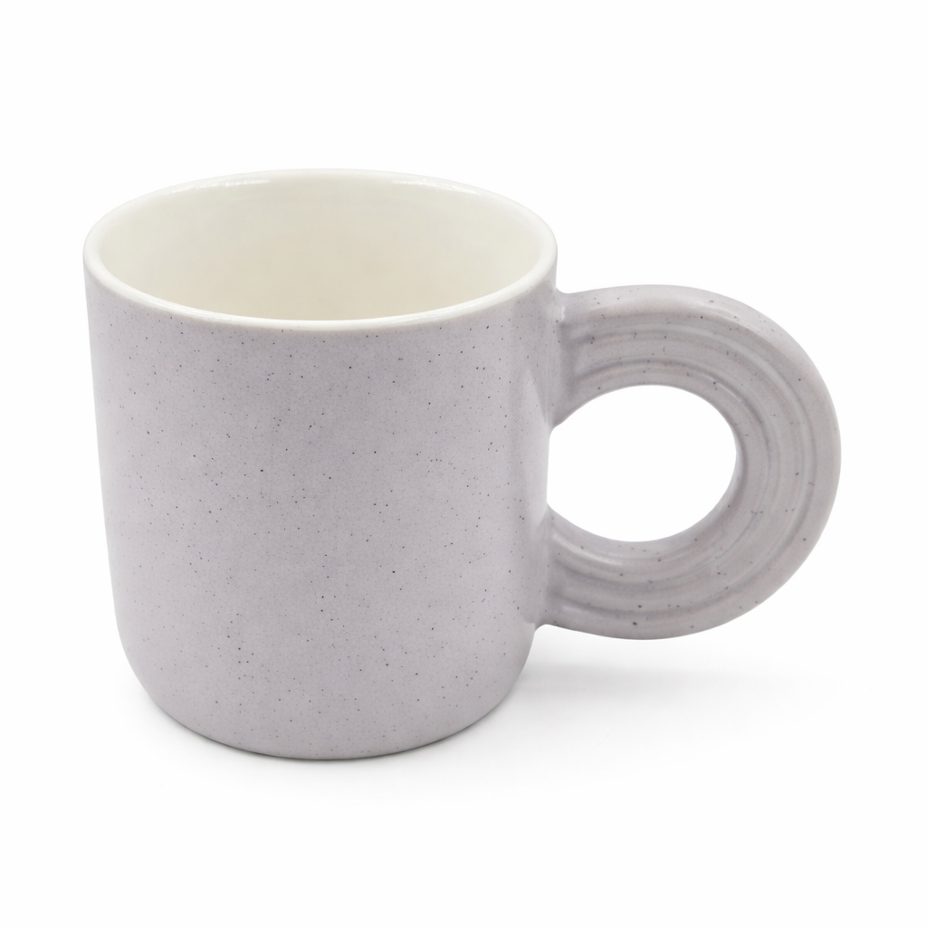يأتي هذا الكوب السيراميك بلون بنفسجي ناعم يميل للحيادي الدافئ، ليمنح طاولة القهوة أو الشاي لمسة نظيفة وأنيقة، وينسجم بسهولة مع مختلف أنماط الديكور العصري والبسيط.