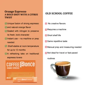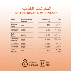 - تركيبة فريدة من مستخلص البرتقال الطبيعي مع القهوة