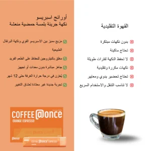 انطلق في رحلة نكهة استثنائية تجمع بين القهوة الفاخرة ونكهة البرتقال الطبيعية – مع كبسولات Once@ المبتكرة.
