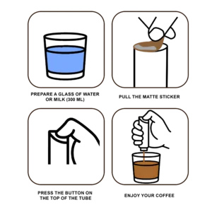 افتح الكبسولة، وامزجها مع 250 – 300 مل من الماء أو الحليب (ساخن أو بارد)، ثم اضغط من الأعلى.