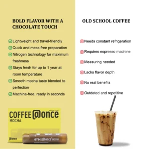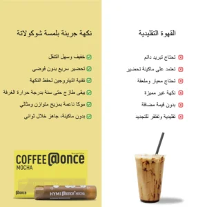 تحتوي هذه العلبة المميزة على كبسولتين من قهوة Once Coffee بنكهة موكا، تُحضّر فورًا بالضغط في كوب من الحليب أو الماء الساخن حسب تفضيلك.