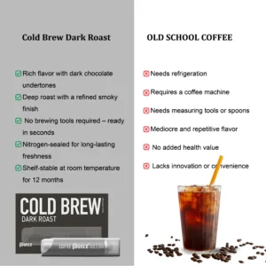 بدون ماكينة، فقط افتح الكبسولة، امزجها مع الماء البارد أو الحليب، واستمتع بنكهة قوية ومنعشة في أي وقت.