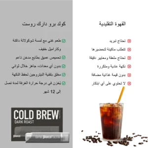 مصنوعة من حبوب قهوة محمصة بدرجة داكنة لتمنحك نكهة عميقة، منخفضة الحموضة، وقوية التأثير. مثالية لمن يبحث عن قهوة باردة مركزة بدون الحاجة لأي معدات.